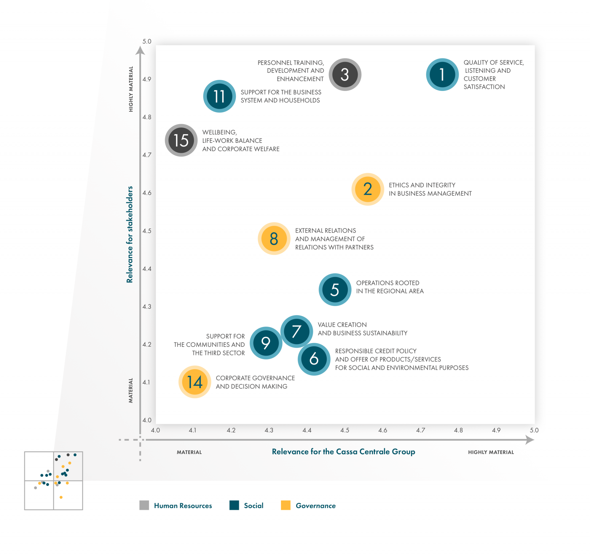 As a Group, we recognise the importance of operating in pursuit of the principles of legality, morality, professionalism, integrity and transparency. This is why Cassa Centrale and the Group Banks have adopted the first 6 sustainability policies.
