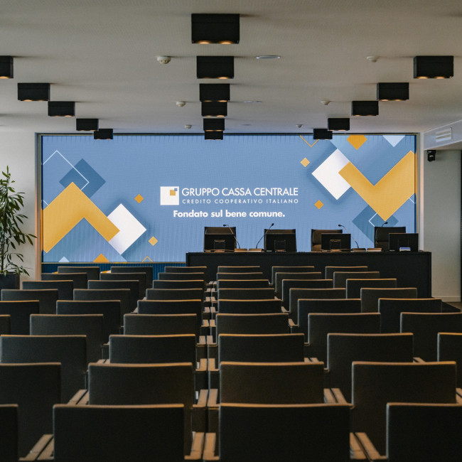 Il decimo piano di rappresentanza ospita la Sala Consiglio, gli uffici di Presidenza e Direzione Generale, la sala eventi e diverse sale riunioni.