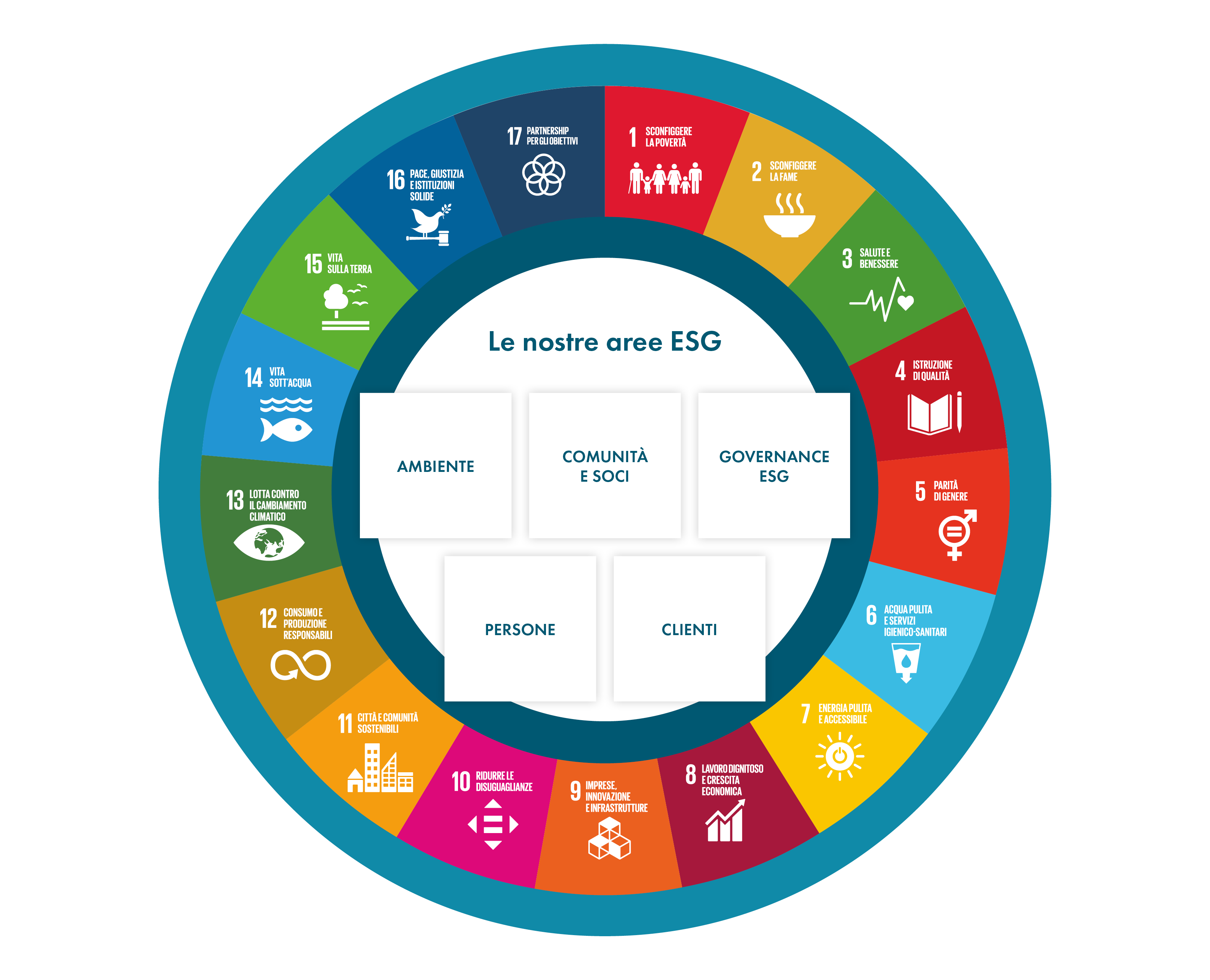 Di seguito sono illustrate le aree ESG del Piano di Sostenibilità 2023-2026, gli obiettivi strategici e le principali attività.